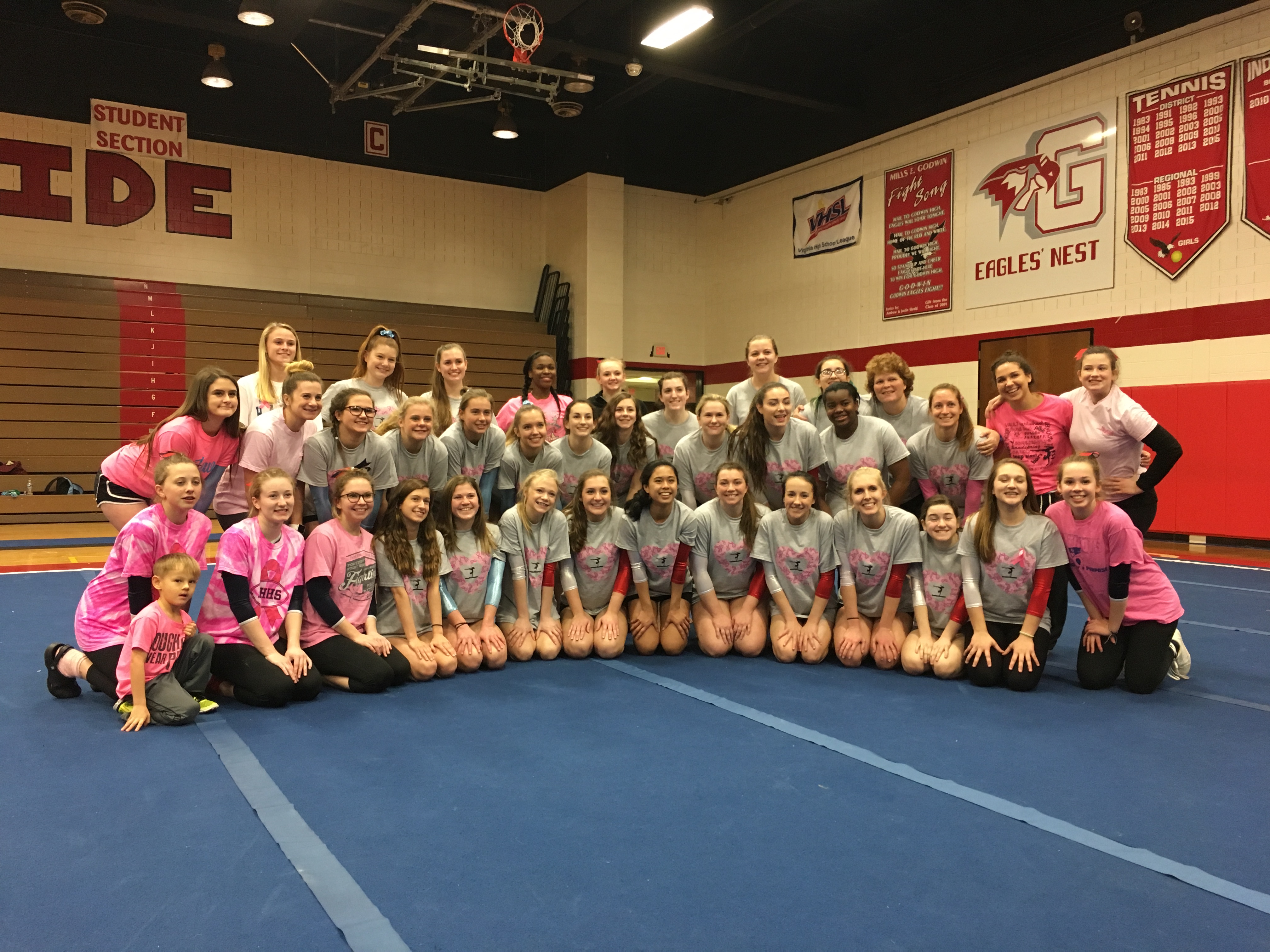 Varsity Gymnastics teams came together to raise awareness for Breast Cancer. All monies raised from our bake sale we put together as well as a portion of funds from our tshirt sales will be donated to the Susan Komen Central Virginia Organization.