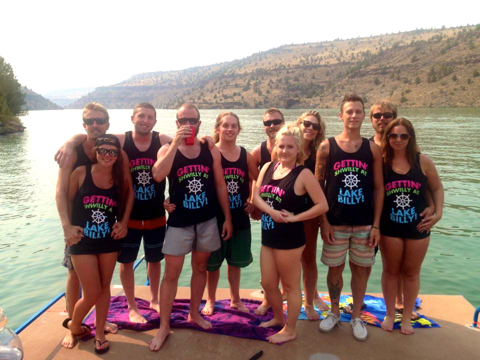 "I have been blessed with a very tight group of friends, and was thrilled that a big chunk of the group was able to get together for a "family vacation" this summer. Our group of 12 (I'm taking the picture) spent 4 days and 3 nights on a house boat at Lake Billy Chinook in the high desert of Oregon this summer. There was much laughter, a lot of floating and swimming in the lake, boating galore, one too many a hot dog, plenty of beverages, and just enough vitamin D from that beautiful summer sunshine. I knew our trip would be enhanced with matching tank-tops because what friend-group doesn't want to pose as an adorable vacationing family?! Custom Ink made it super easy to design the perfect tank-top for the trip, and let me tell you - no one was allowed to board our "ship" without wearing it. :) Thank you Custom Ink for adding to our memorable vacation! We definitely got shwilly [silly] at Lake Billy! "