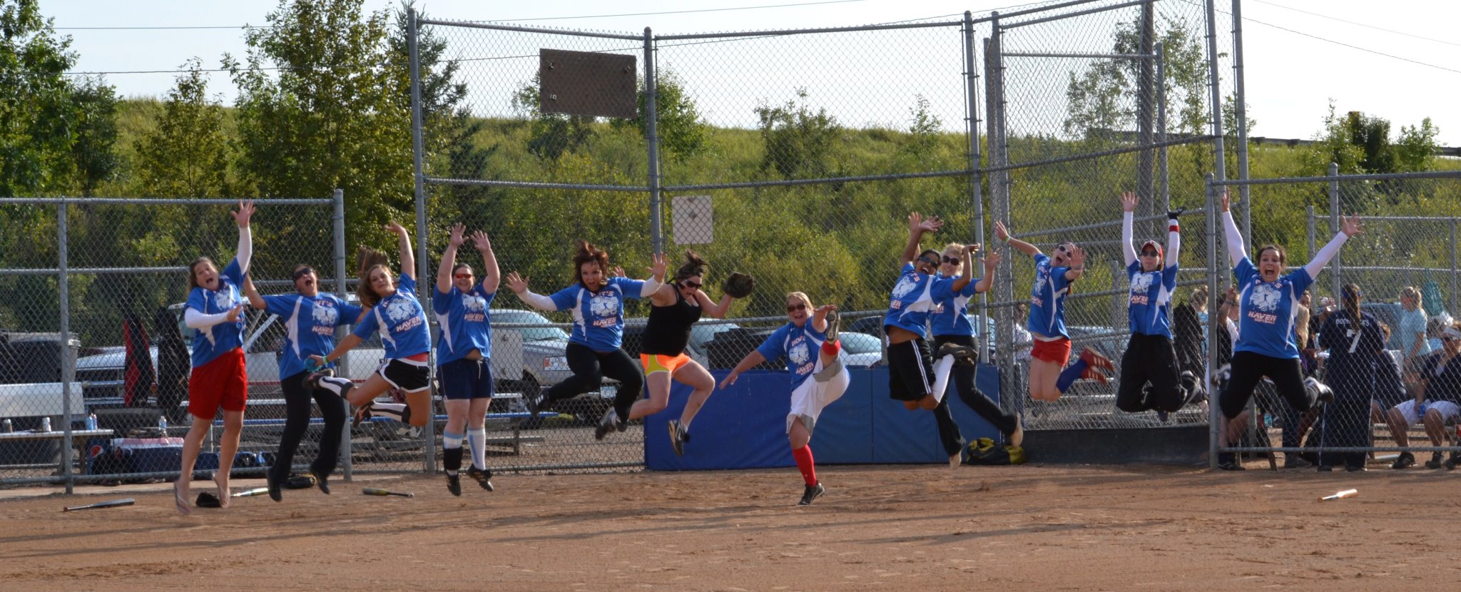 "This team has been together for years. The event we are at is league softball in Virginia, MN. We decided to show off a little prior to a game. This Photo was taken after our first order with CustomInk, I believe in 2011. We have since purchased duplicate jerseys for our newest team members every year! We love them!