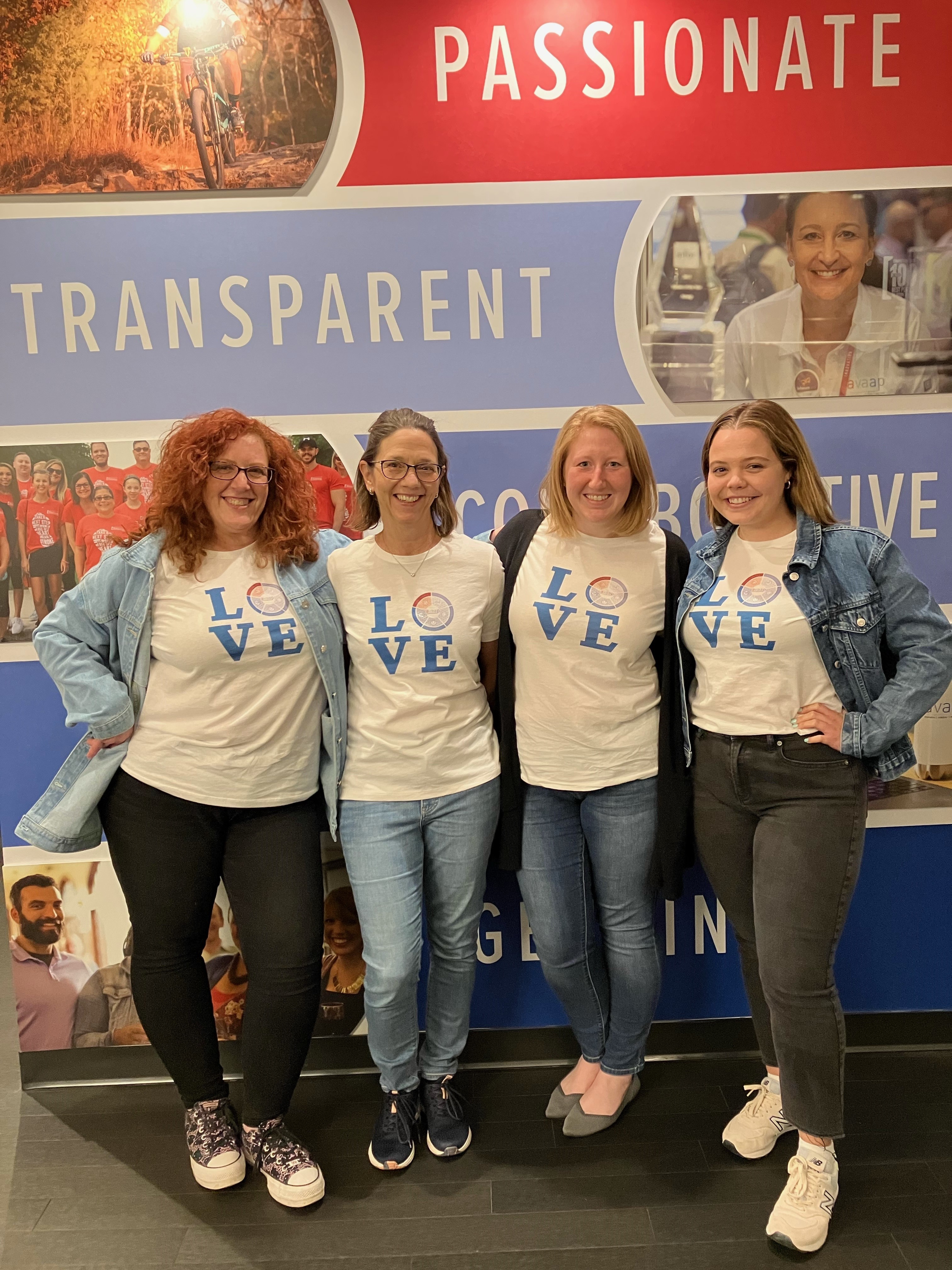 "We're seeing a return to in person events! We love wearing our brand whether it's at an industry event like Workday Rising or Tableau Conference or an in-office gathering. Here, just another day at the office!"