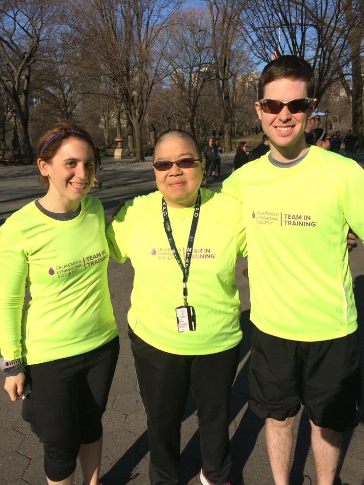 "First off, working with Custom Ink was Incredible! You got right back to me with all my questions and e-mails and such. We were the only 3 who showed up to practice this past Saturday morning who had the shirts on. We run/walk to find a cure for The Leukemia and Lymphoma Society! One Day we will find a cure to beat cancer and hopefully that day will be soon! This was taken in Central Park at about I would say 8:50AM. "