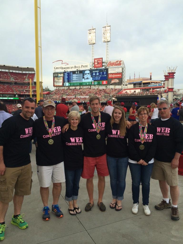 "Members of W.E.B. (William E. Boyle) Connection --After running the Cincinnati Flying Pig Marathon the team took in a Cincinnati Reds baseball game.