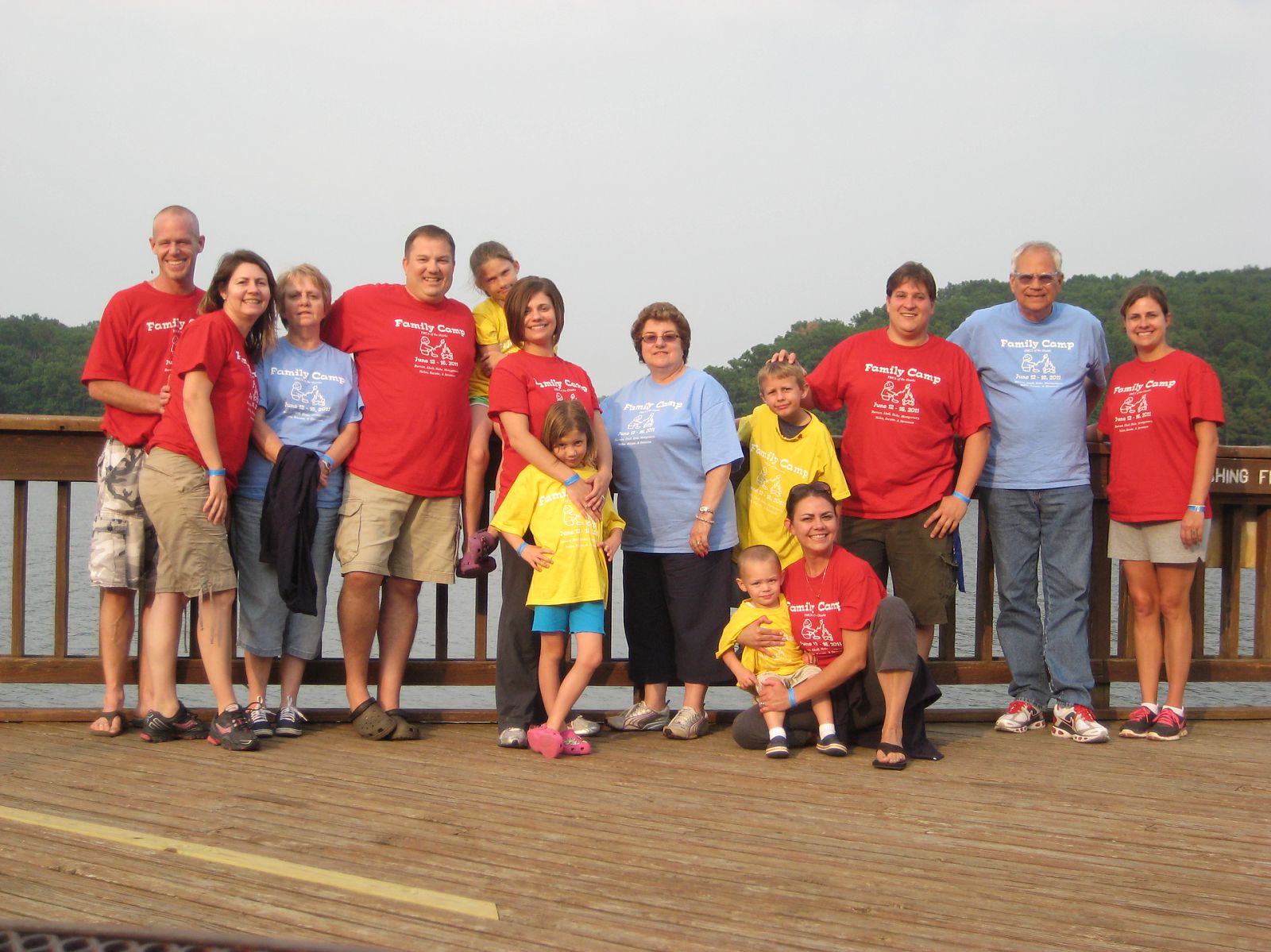 "YMCA of the Ozarks in Missouri June 12-16, 2011. We had a family reunion and we did a generation theme. Grandparents in light-blue, Kids in Red, and Grandkids in Yellow. CustomInk was aweome with helping us design our shirts. "