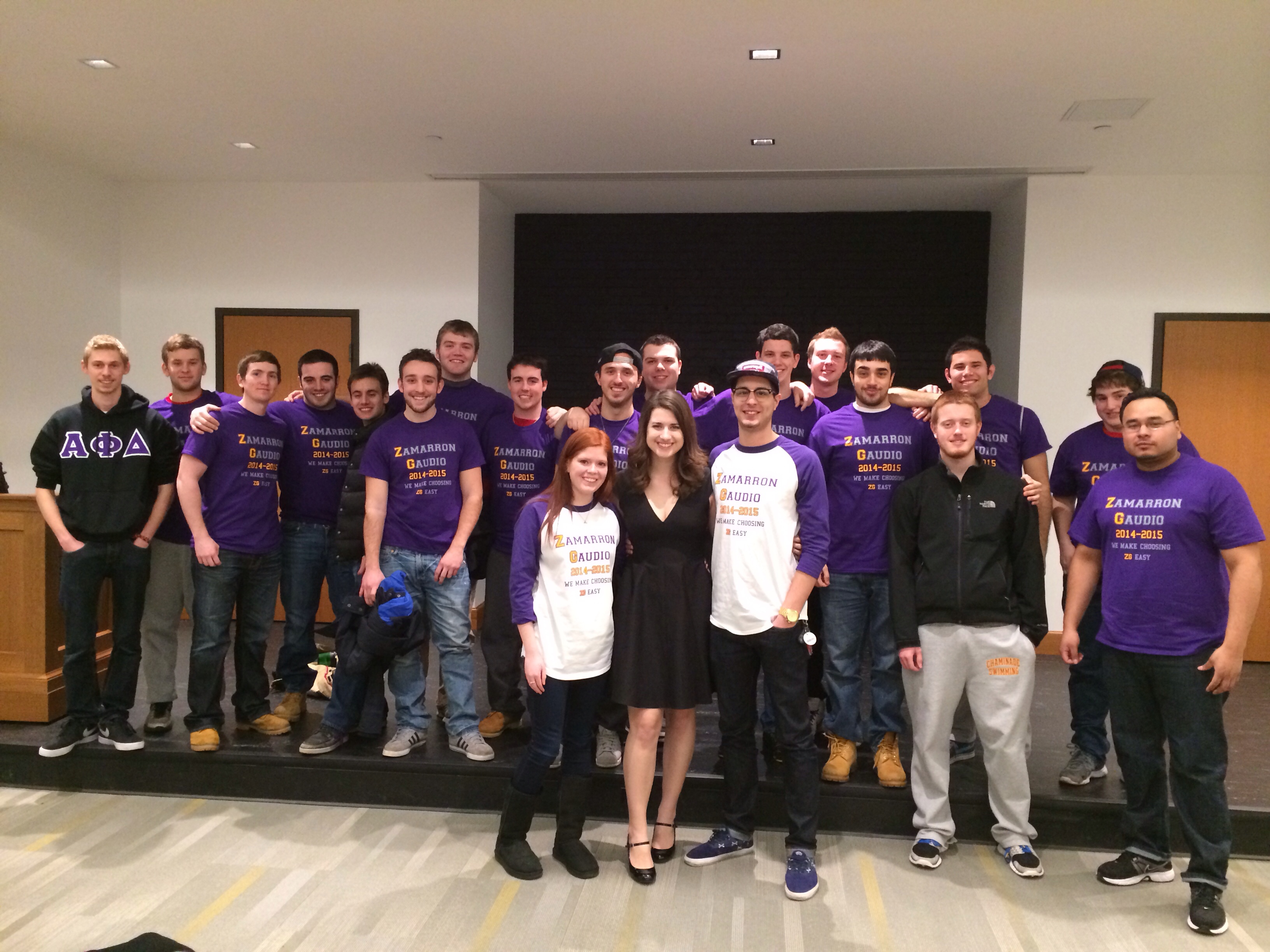 "This photograph was taken right after speech night for Marist College's Student Governemnt elections. Andrew Zamarron and I are running for Student Body President and Vice President which is quite a commitment. While we make choosing ZG easy, CustomInk made it easier to choose them! Requesting samples and ordering our 2 different styled shirts was extremely easy. When worrying about an entire campaign, it was nice to know CustomInk was on our side. "